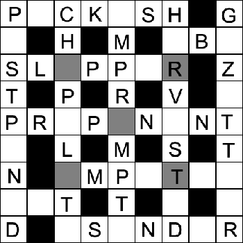 The vowels, A, E, I, O, and U have been removed from the crossword below. Can you replace them correctly? When you have done so, the letters in the highlighted squares can be rearranged to form another word. Send that word to me (Rorey Padfoot) in a HOL message for 20 beans.